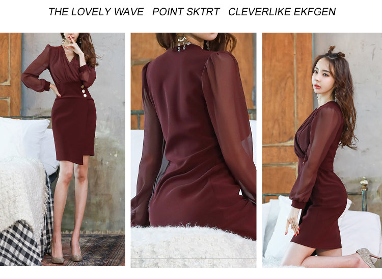 【女性の魅力を引き出す、美シルエット】 高めのウエストラインで脚長効果は抜群。気になる部分をカバーしながら、女性らしい曲線美を強調します。上品な長袖デザインは、一枚でコーディネートが完成するのも嬉しいポイント。