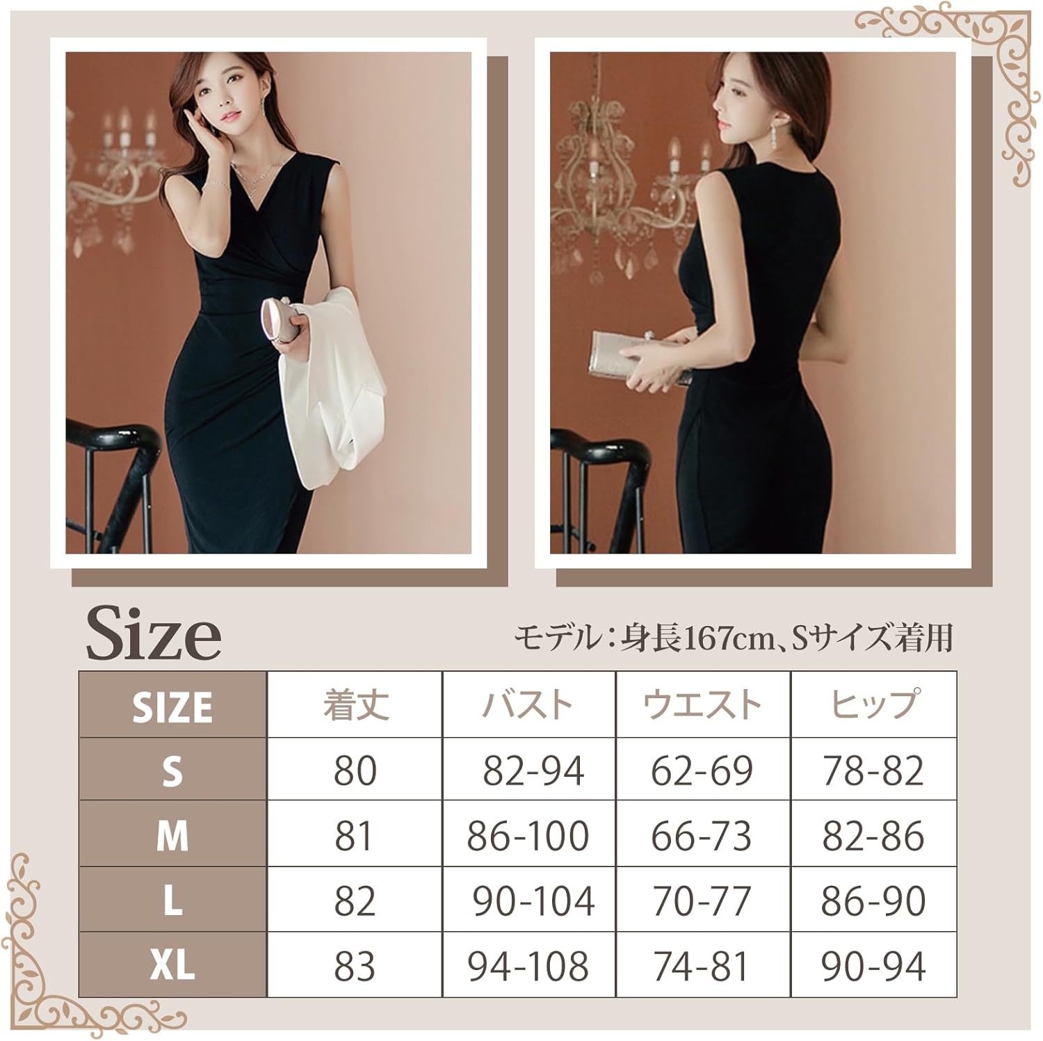 【オンオフ問わず、様々なシーンで活躍】 パーティーや二次会などの華やかな場はもちろん、お食事会やデートにも。ミニマルなデザインだからこそ、アクセサリーや小物次第で様々な表情を楽しめます。
