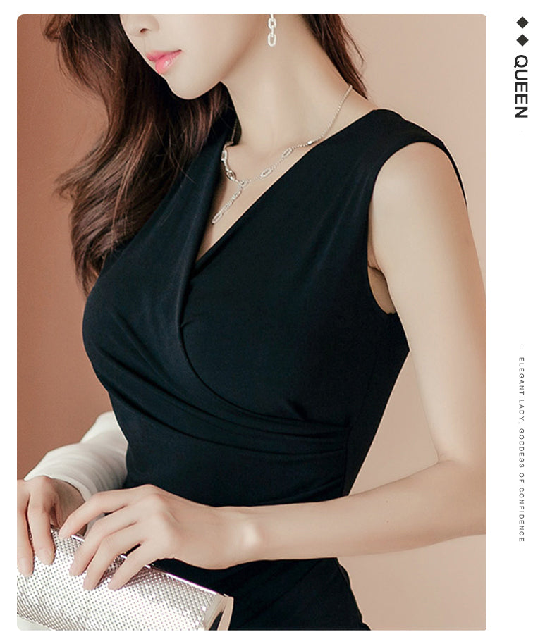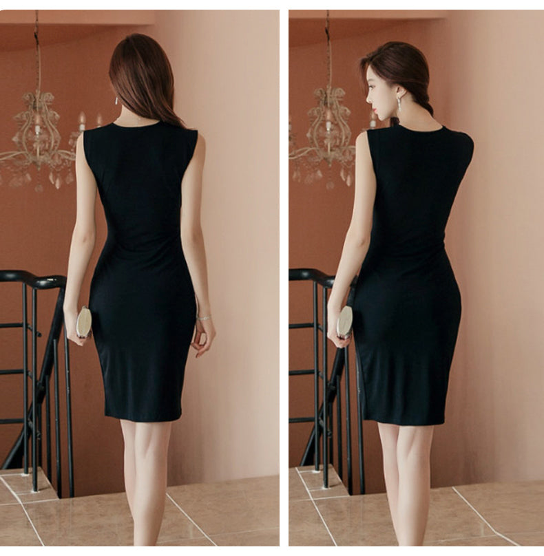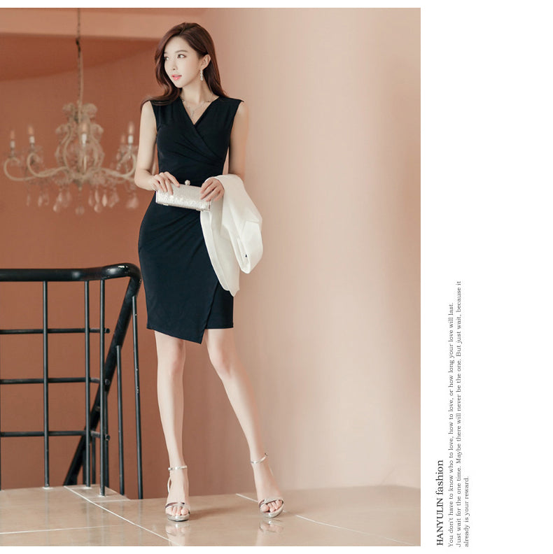 Vネック タイトフィット ワンピースドレス