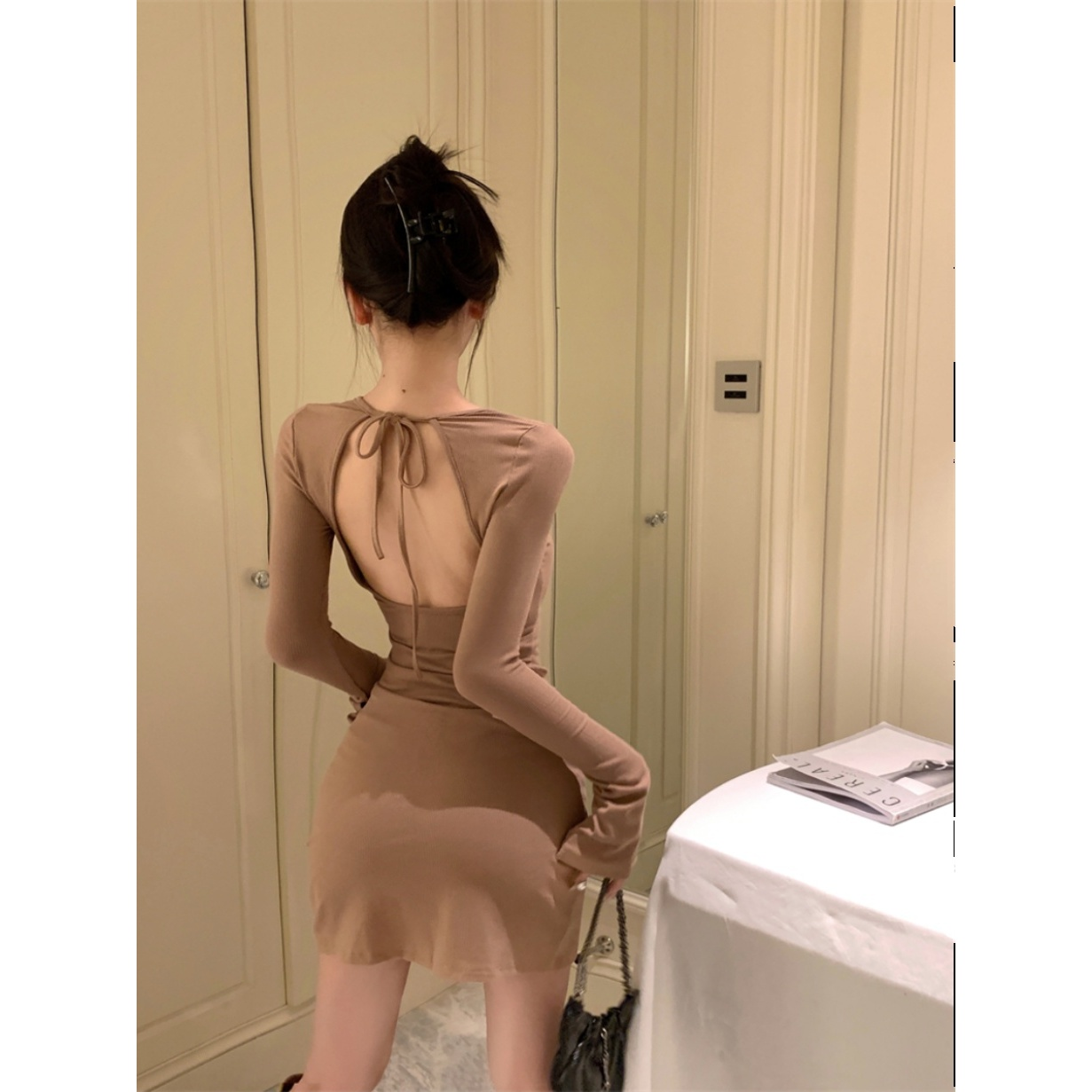 シンプルながらも印象的な美背中を演出する、バックオープンデザインのタイトワンピース。