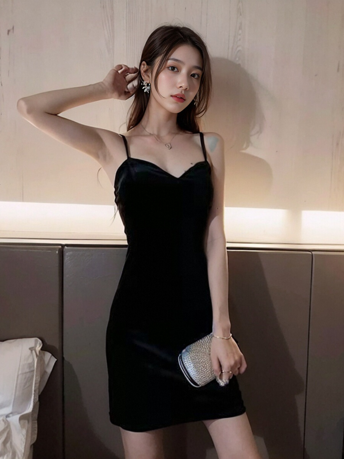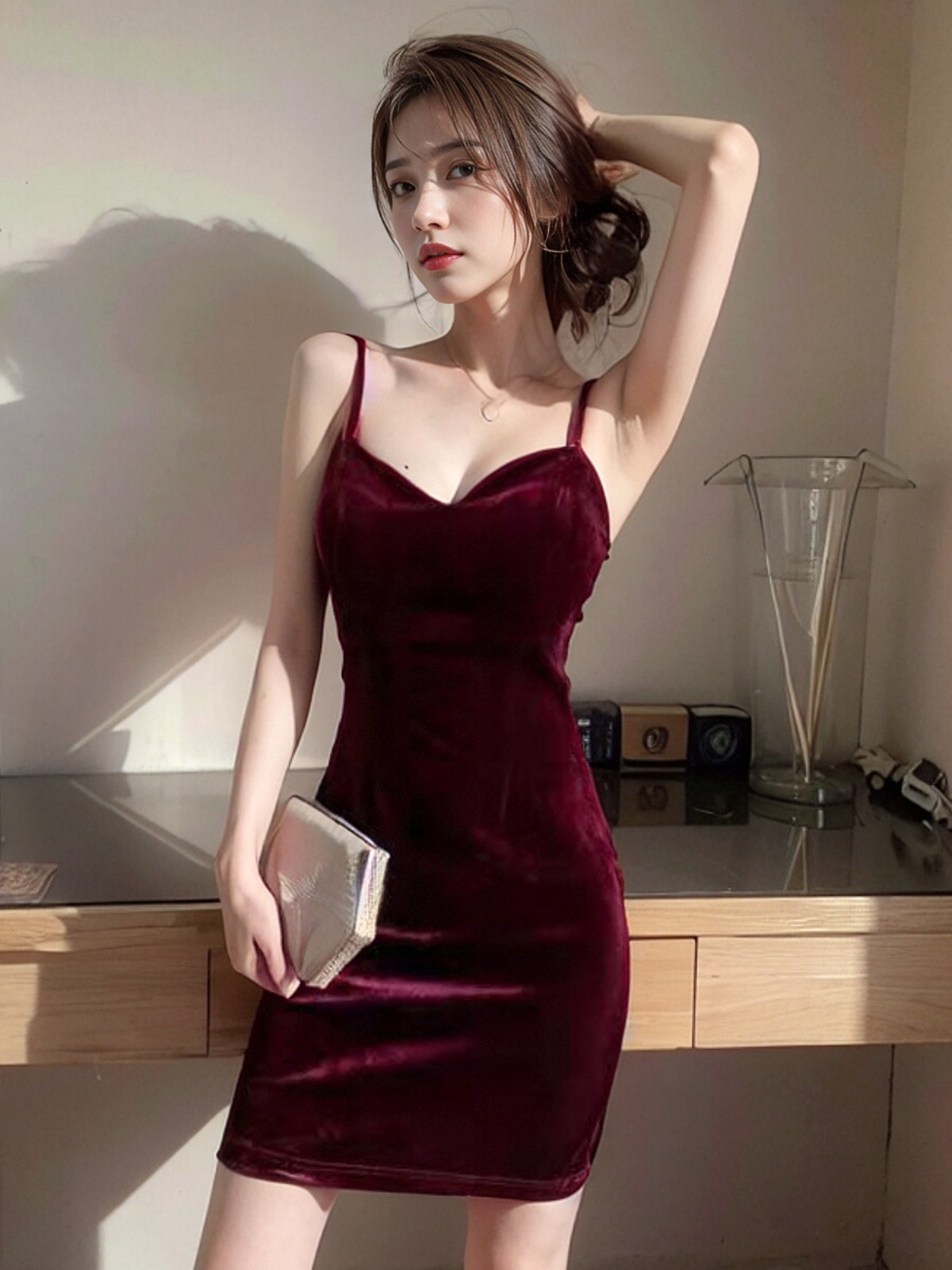 上品な光沢を放つベルベット生地が、ラグジュアリーな印象を与えるキャミソールドレス。